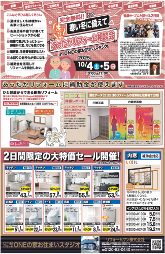 | 開催場所 | リフォームワン「ONEの家お住まいスタジオ」 |