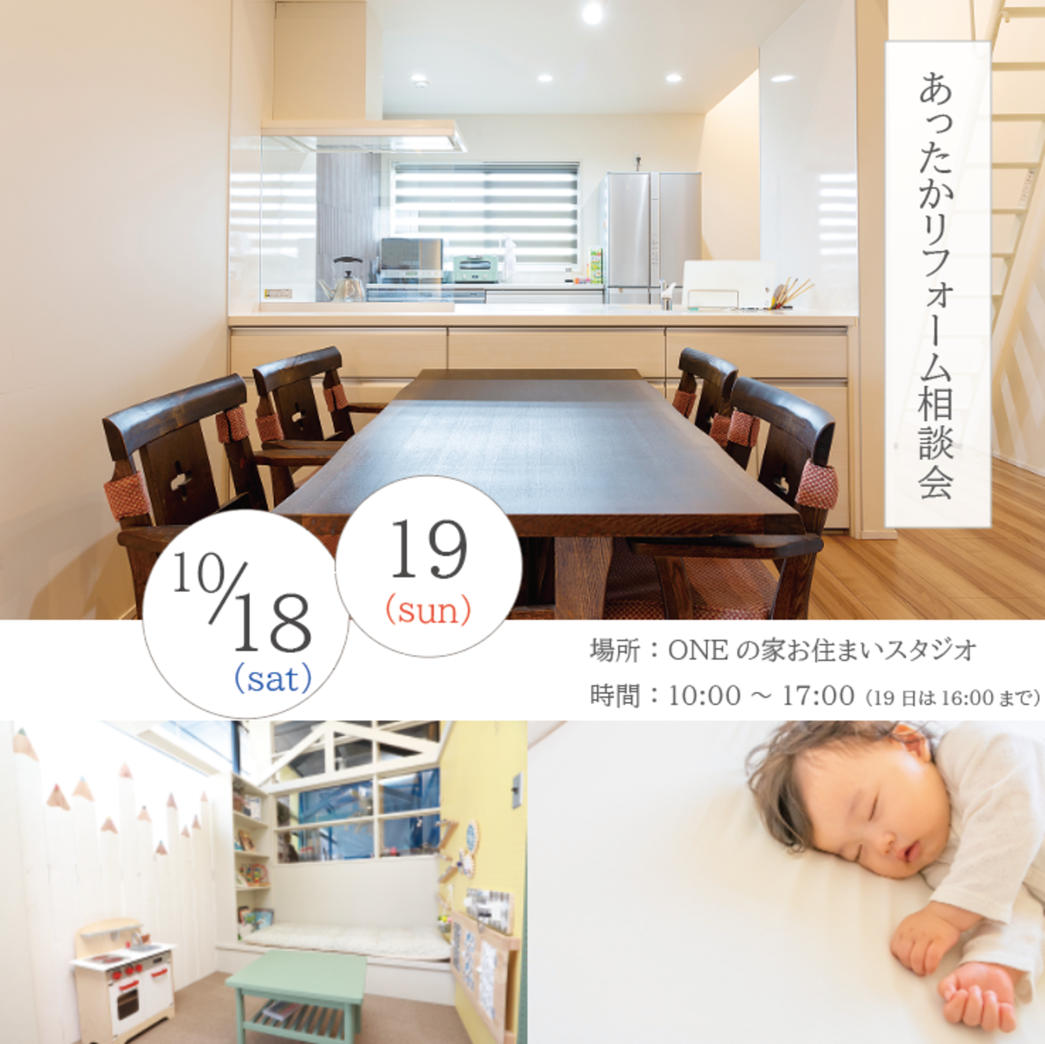 開催場所 | リフォームワン「ONEの家お住まいスタジオ」 |